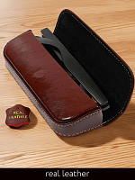 Футляр для очков кожаный R-10061 глянцевый коричневый