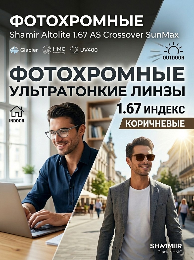 Линзы Shamir - это высококачественная оптика Израиля и современные технологии в антибликовых покрытиях. Компания SHAMIR использует в производстве линз такие технологии как Eye-Point Technology III®, Natural PostureTM, As-Worn QuadroTM, и IntelliCorridorTM. Огромное разнообразие используемых материалов вместе с современным дизайном позволяет осуществить практически любые оптические задачи. Страна разработки: Израиль. Страны производства: Израиль, Португалия, Тайланд.