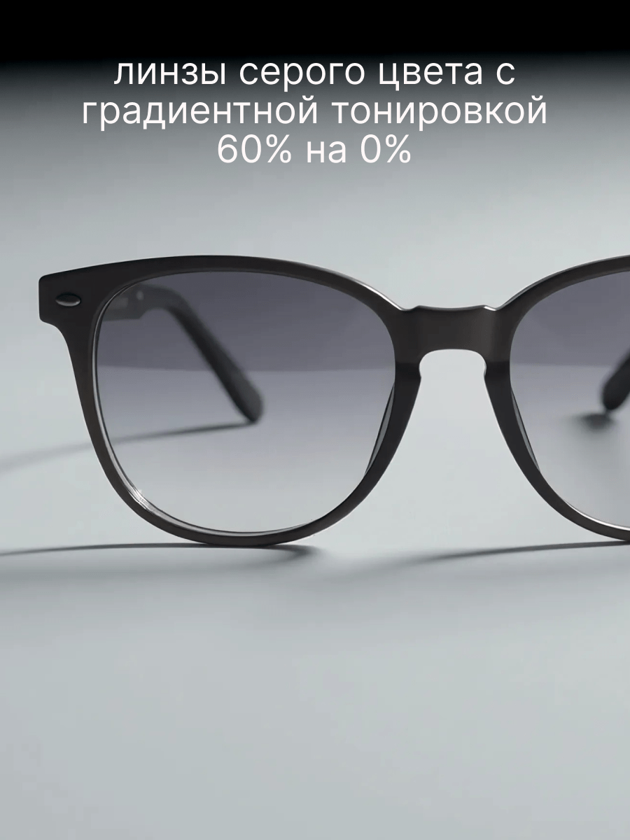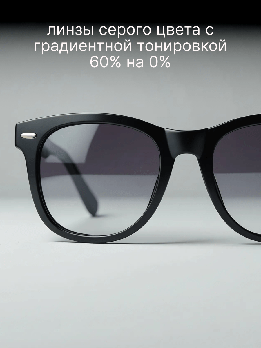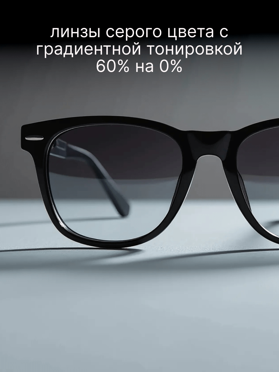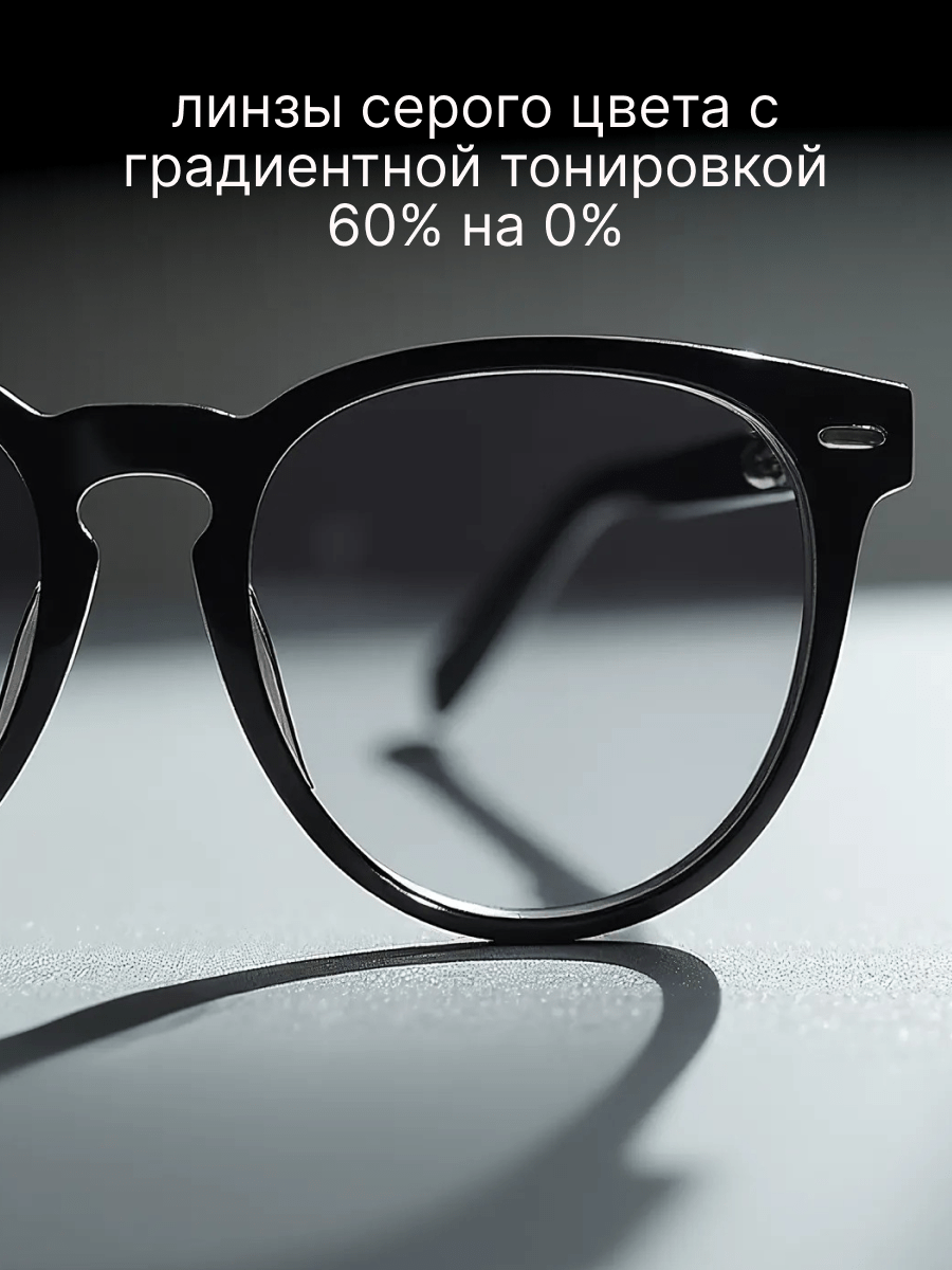 - Линзы для очков серого цвета с градиентной тонировкой 60% на 0% - это практичный и стильный выбор, который обладает высокой степенью защиты от УФ-лучей и помогает снизить яркий свет и блеск. Они также добавляют индивидуальность и модный вид вашим очкам, позволяя выражать свой стиль и смотреться превосходно.