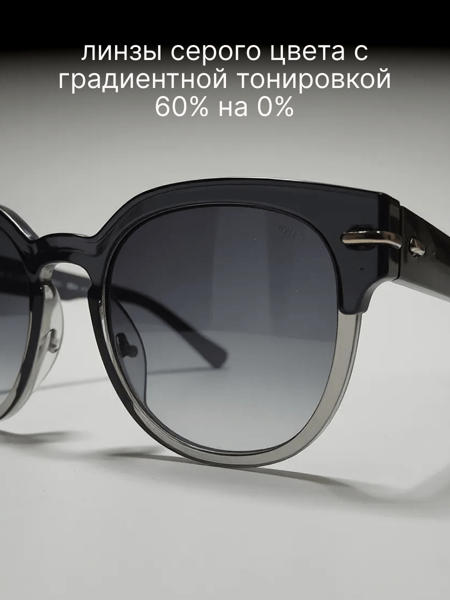 - Улучшение контрастности и четкости: Серая градиентная тонировка помогает улучшить контрастность и четкость визуального восприятия. Более темная верхняя часть линзы усиливает контраст и делает объекты более четкими и отчетливыми, что полезно в различных ситуациях, включая вождение и чтение.