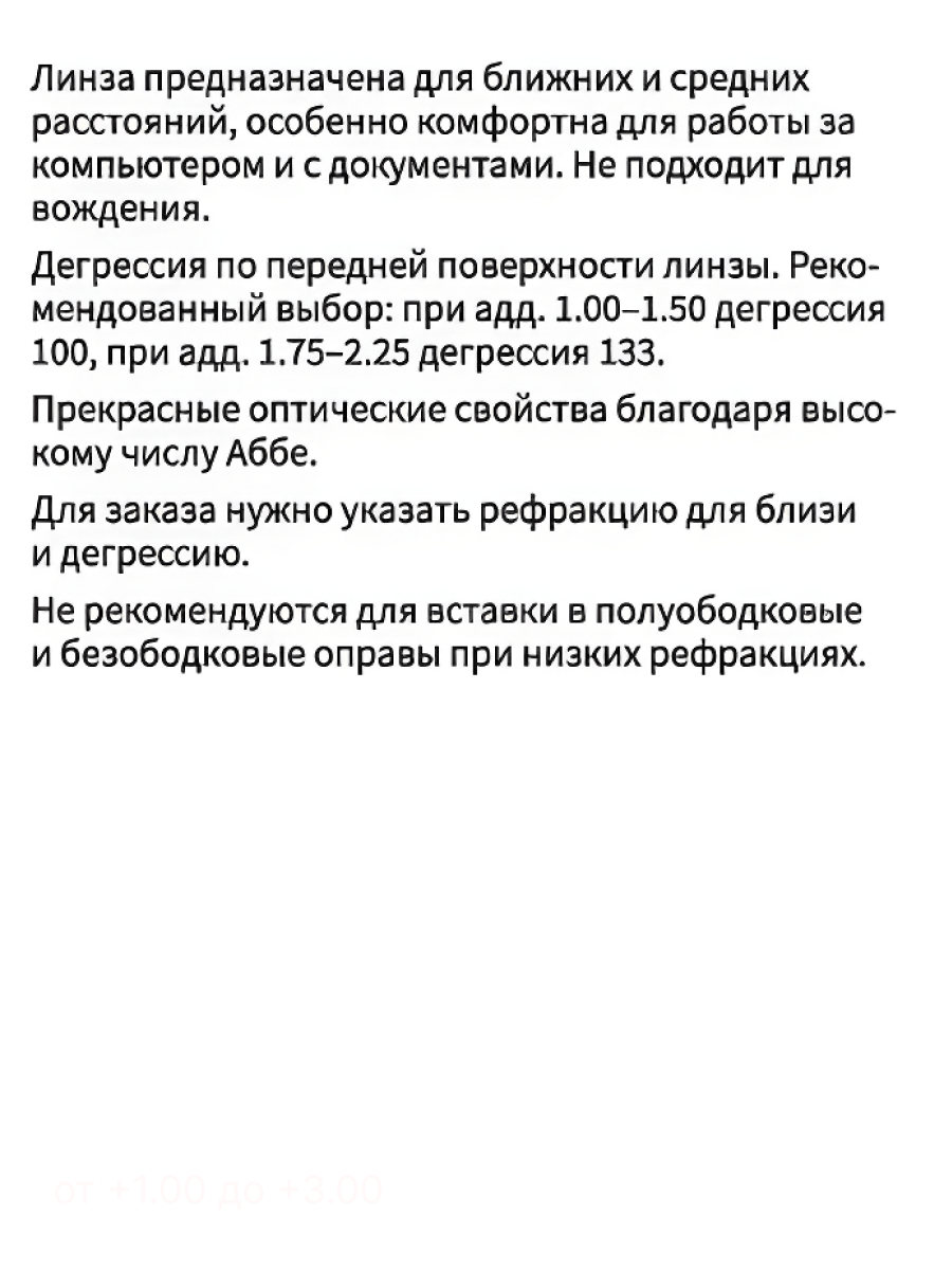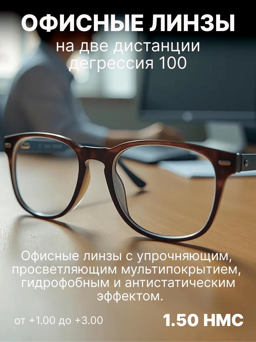Офисные полимерные линзы Maxima 1,5 созданы для работы на близких и дальних расстояниях. Рекомендованы молодым пресбиопам и людям впервые обратившимся к офтальмологу. Советуем тем, кто не желает носить прогрессивные очки. Упрочняющее, многослойное просветляющее, водоотталкивающее и антистатическое покрытия обеспечат комфортный уход и "прозрачное" зрение каждый день.