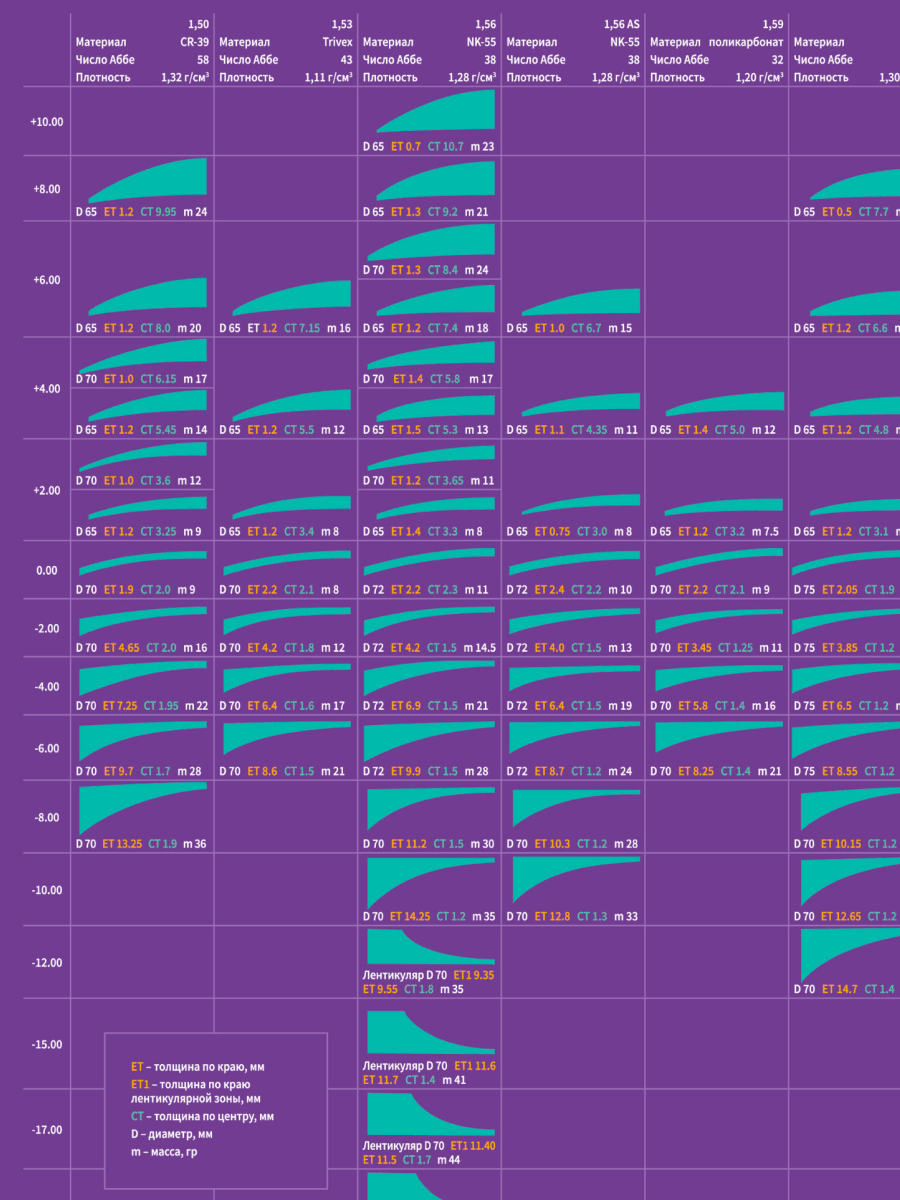 | 0.00 до -6.00 | 0.25 | -0.25 до -2.00 | 0.25 | - | 2 250 | - |
