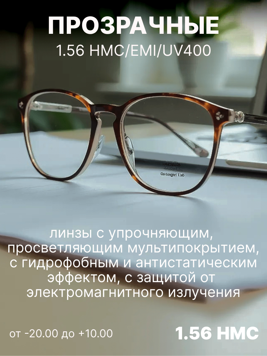 Покрытие Electromagnetic Interference (EMI) (электромагнитная интерференция) - такое покрытие предназначено для защиты глаз от воздействия вредного электромагнитного излучения, которое может исходить от экранов компьютеров, смартфонов, телевизоров и других электронных устройств. Оно работает как барьер, уменьшая проникновение электромагнитных волн через стекло или полимер линзы, что особенно актуально для людей, проводящих много времени перед экранами.