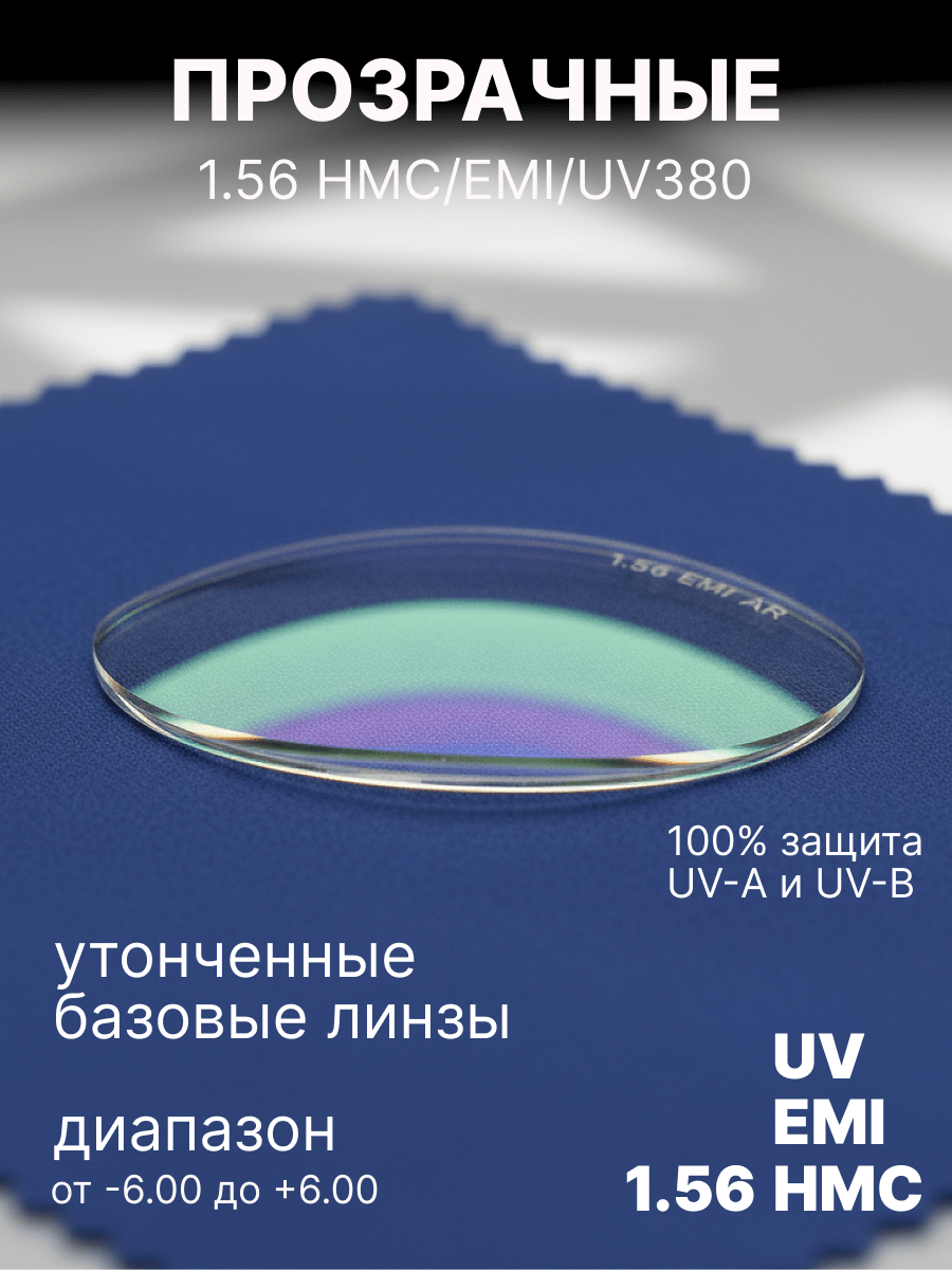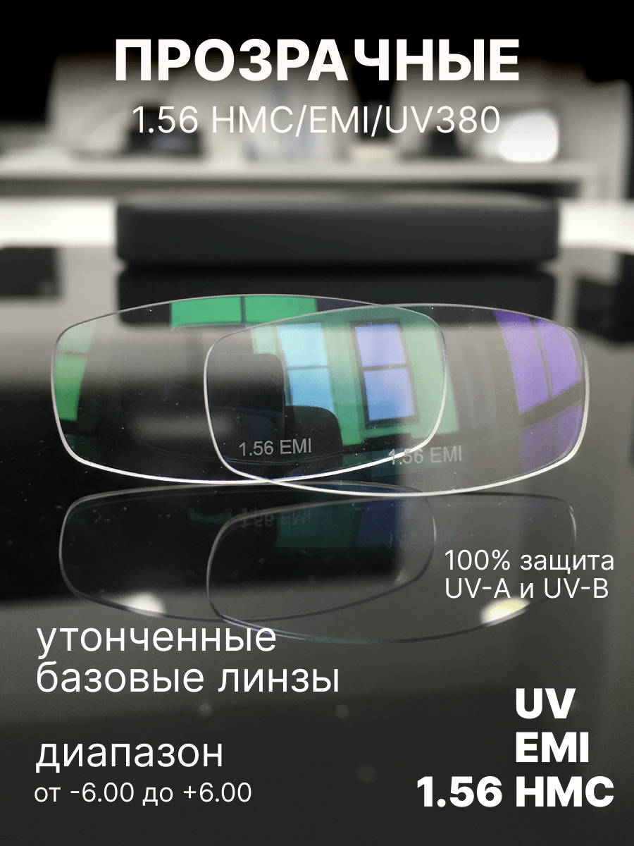 Покрытие Electromagnetic Interference (EMI) (электромагнитная интерференция) - такое покрытие предназначено для защиты глаз от воздействия вредного электромагнитного излучения, которое может исходить от экранов компьютеров, смартфонов, телевизоров и других электронных устройств. Оно работает как барьер, уменьшая проникновение электромагнитных волн через стекло или полимер линзы, что особенно актуально для людей, проводящих много времени перед экранами.